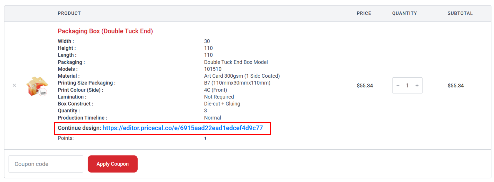 Click the “Continue Design” link to launch our online editor powered by Pacdora.