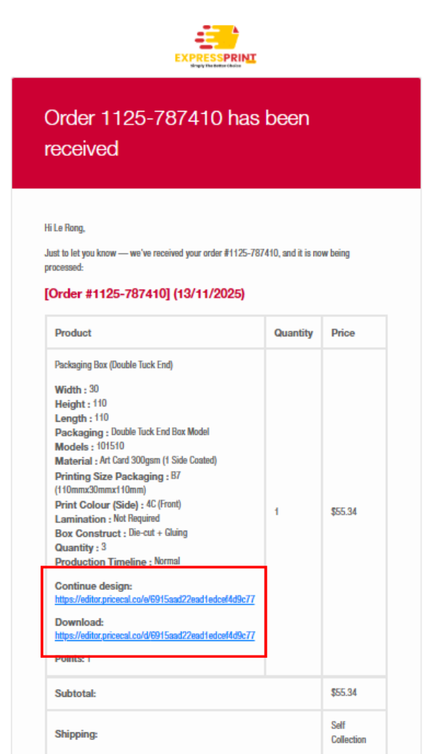 Once you have downloaded your artwork, please remark your order number and send it to sa***@ex**********.sg.