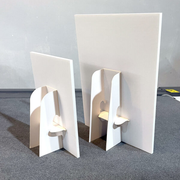Table display stands are used to showcase items / promotions on a table or counter. They are commonly used in retail stores, trade shows, and other events where products or information need to be displayed attractively and effectively. Foam board table display stands are lightweight, affordable, and eco-friendly stands made from foam material. Overall, these table display stands are a great way to showcase products or information in an organized and visually appealing way, and can be customized to fit specific needs and preferences.